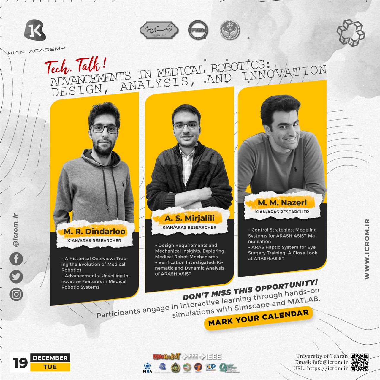 - A preclinical test of ARASH:ASiST, a dual-core training eye surgery robot, was conducted at Farabi hospital.